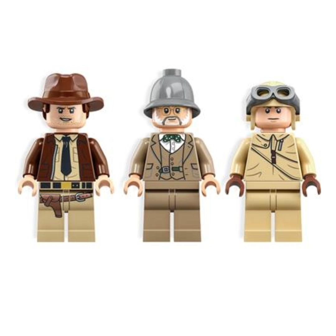 The building set comes with 3 minifigures: Indiana Jones with his famous whip, his father Professor Henry Jones Sr.™ holding a diary, and a fighter pilot so kids can play out a famous chase scene from the Indiana Jones and the Last Crusade movie.